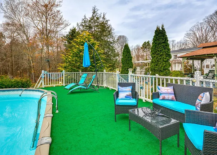 Situada 2.5 km de The Farmhouse Siloam, a Hot Tub, Home Gym, Decks! Retreat 9 Mi To Mt Airy Ararat inclui piscina ao ar livre bem como sauna para relaxar. Com pátio, esta casa de férias de Ararat está situada a uma distância aproximada de 20 minutes a pé de Blackwater Community Church.